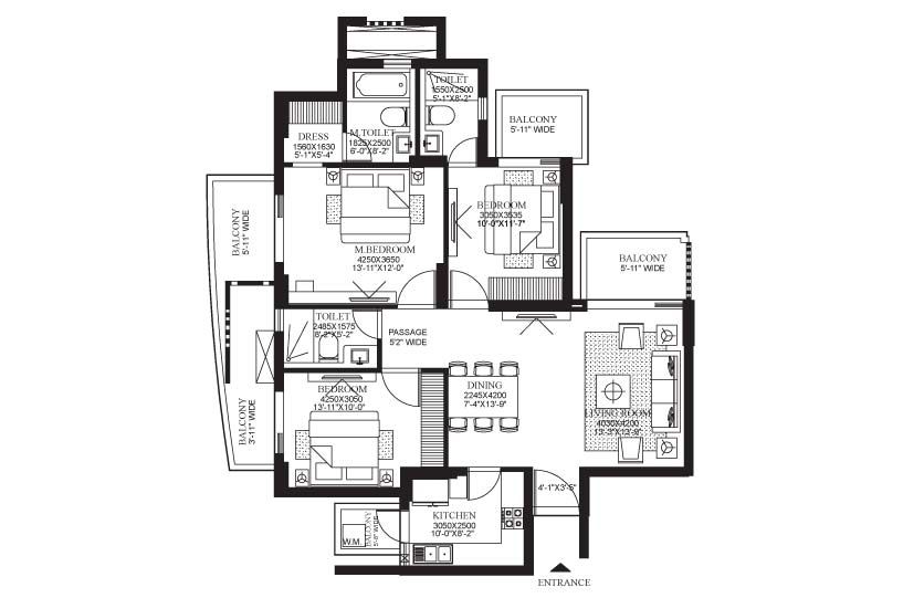 3 BHK units from 1799 to 2086 Sq. Ft.