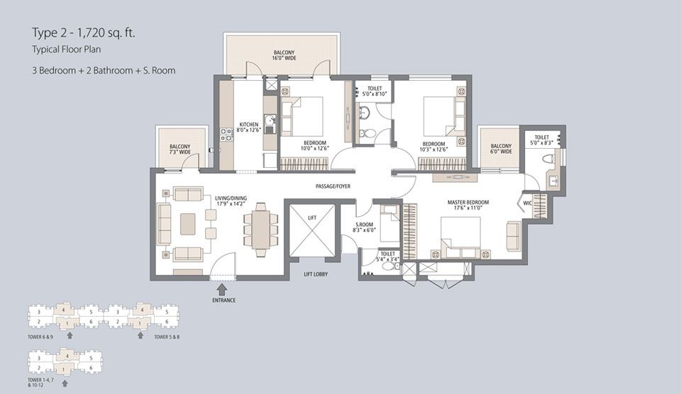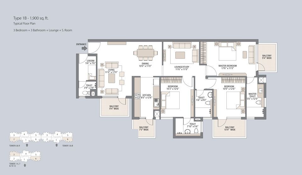 3 BHK Floor Plan Size-1720 to 1900 Sq. Ft.