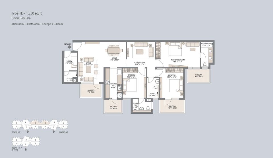 | 3 BHK + 3T + SQ | 1850 | Call for Price |