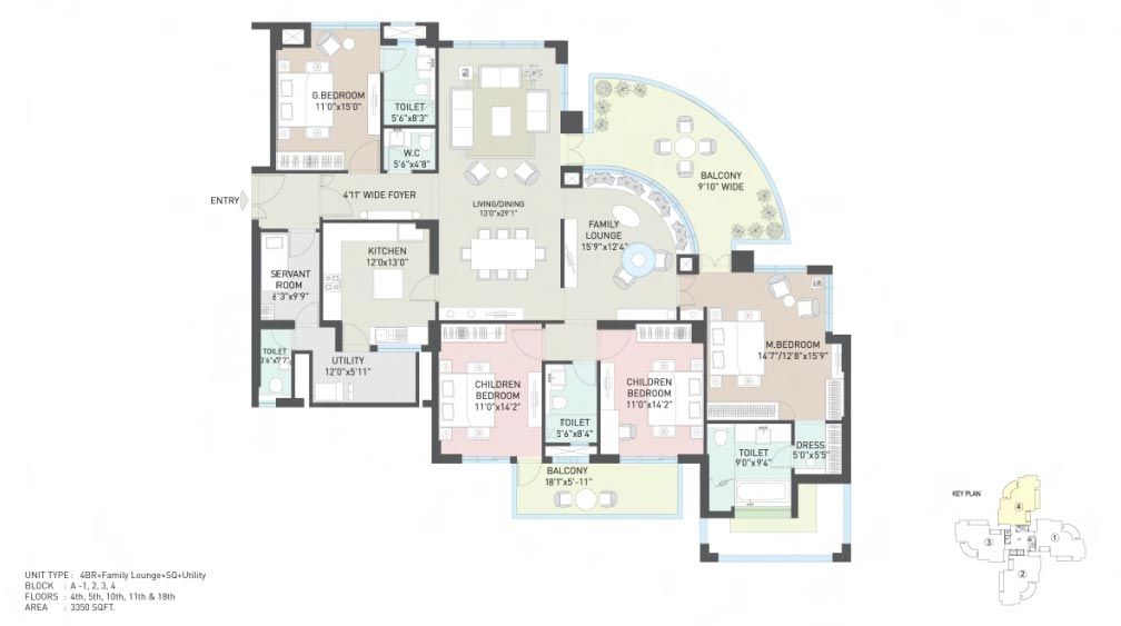 | 4 BHK + Family Lounge | 3350 | Call for Price |