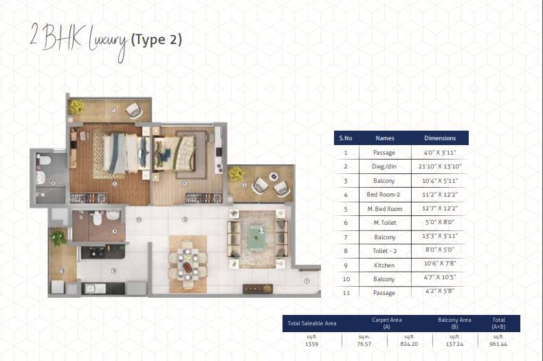 | 2 BHK Luxury- Type2 | 961.44 | Call for Price |