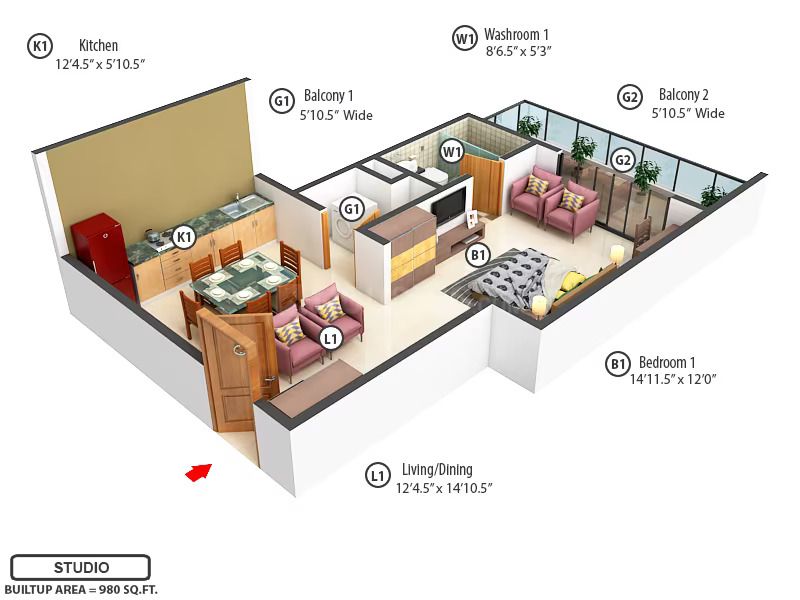 | Studio Apartment | 980 | Call for Price |
