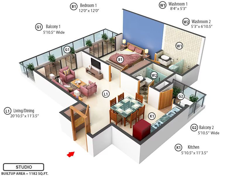 | Studio Apartment | 1182 | Call for Price |