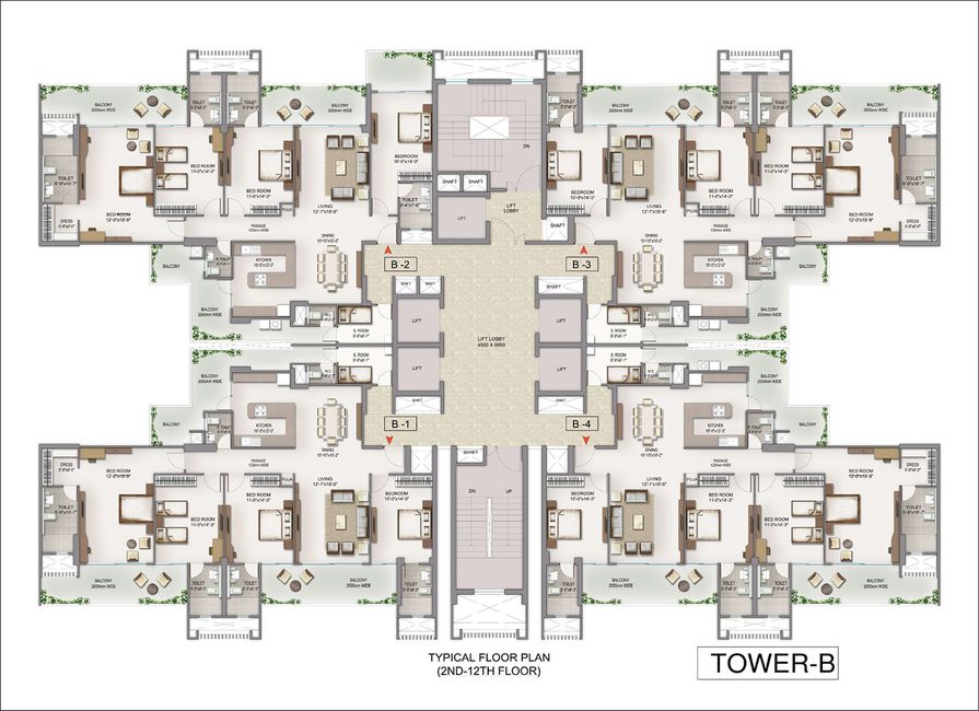 | 3 BHK + Servant Room | 1845-2355 | Call for Price |